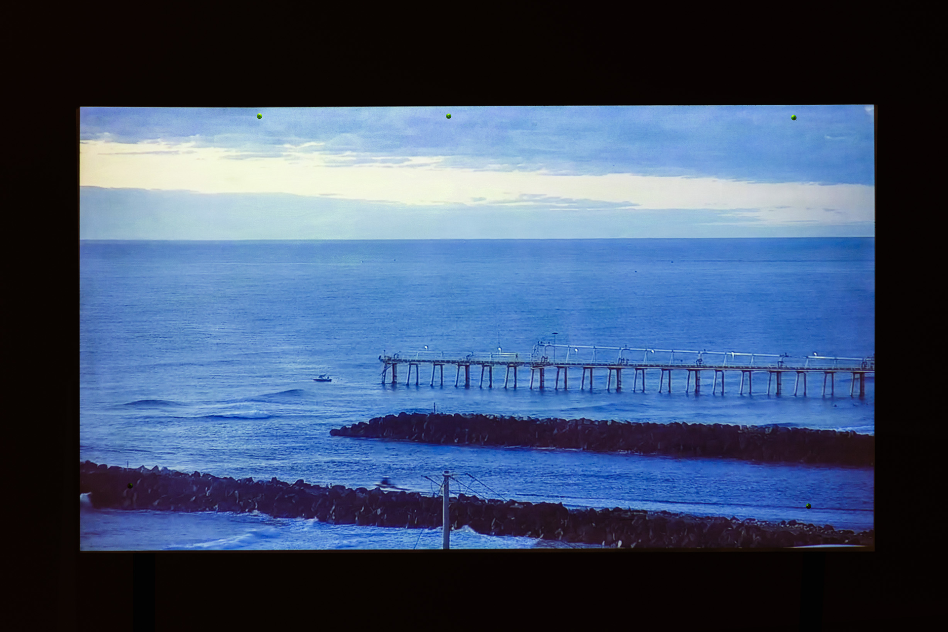 two channel video, recorded live stream of various opposite shores at high tide and low tide